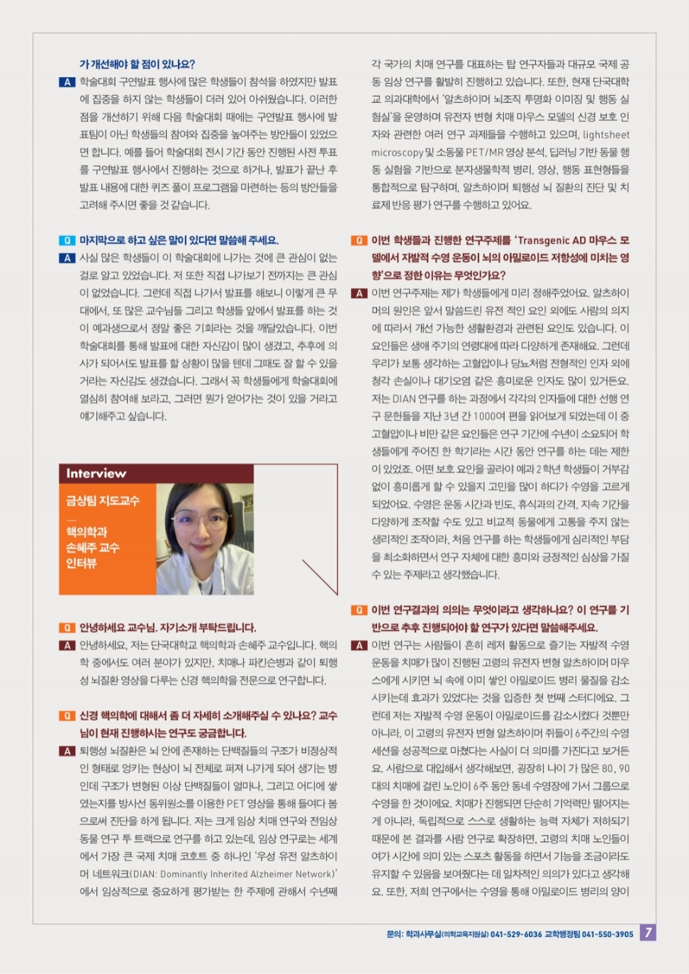 다음 3월호에 실릴 인터뷰는 우리 학교를 졸업하시고 현재 미국의 소아과 의사로서 계신 교수님의 이야기를 실을 예정이다.